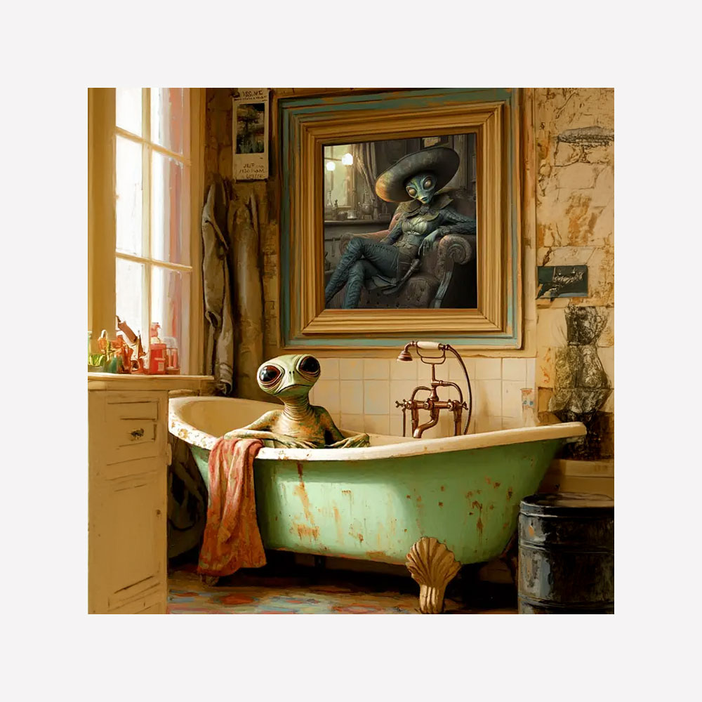 The Alien in a Bathtub Magnet delivers quirky sci-fi humor with a playful twist, showing a relaxed extraterrestrial enjoying a bubble bath. This eye-catching design taps into strong search demand for alien magnet, alien gifts, funny alien art, UFO novelty gifts, and extraterrestrial merchandise, making it a standout item for gift shops, science stores, bookstores, and novelty retailers looking for products that spark curiosity and laughter.